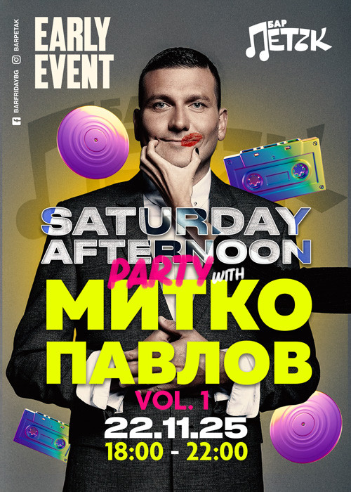 SATURDAY AFTERNOON PARTY WITH МИТКО ПАВЛОВ - Бар Петък - 22.11.2025
