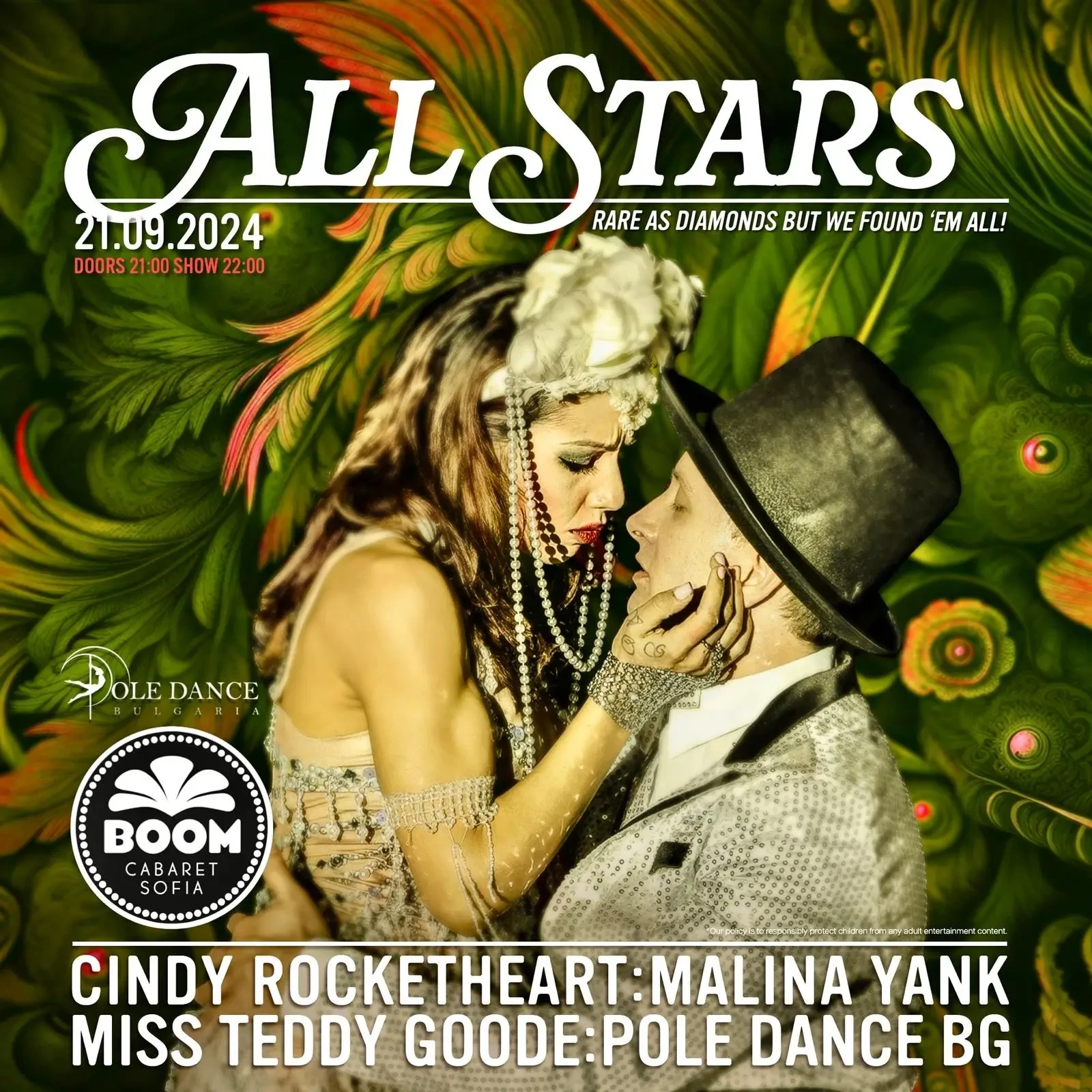 Голямото диво шоу на резидентите е тук! Певици, танцьори, акробати и кабаре диви се събират за нощ на бляскаво шоу! През септември ще видите нашите нови изпълнения, като премиерни актове ще представят всички звезди на българското кабаре! Единственото бурлеск шоу и нас ще ви вдъхнови с един нов пищен спектакъл с над 10 артисти!