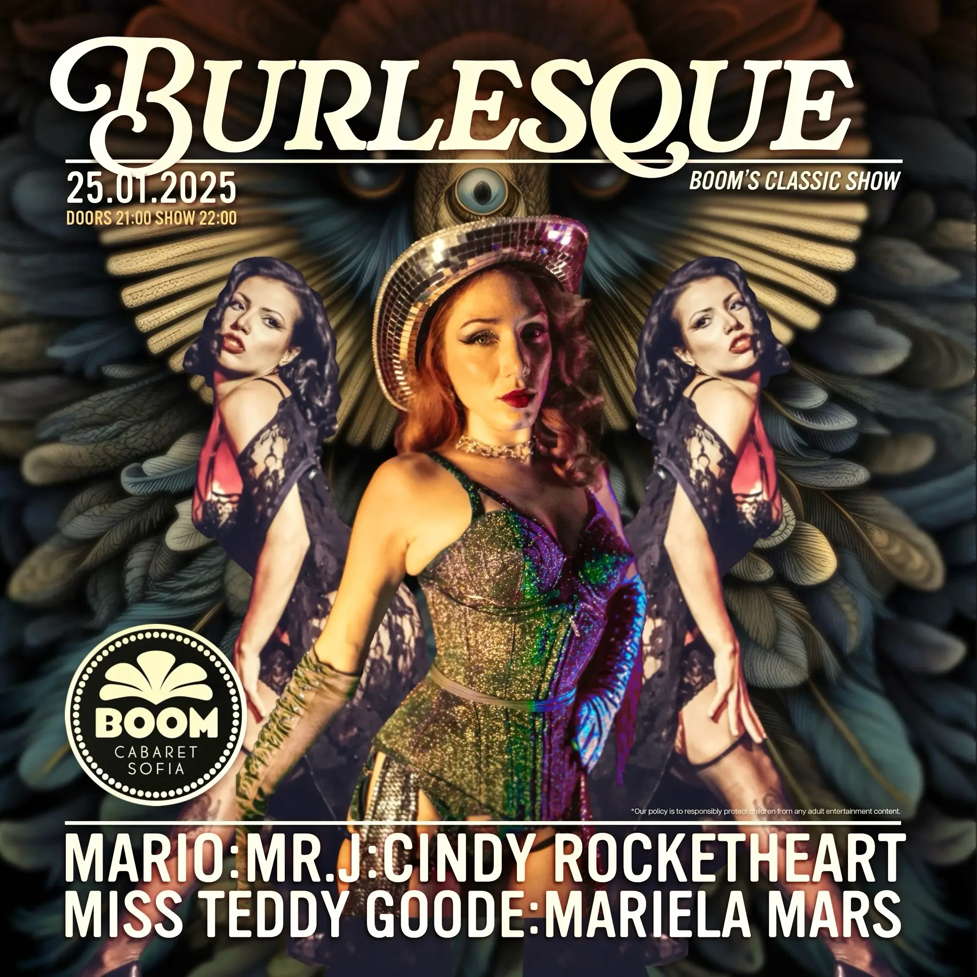 Всичко ще бъде поднесено с комедия, вкус и разбира се доза провокация! Единственото кабаре у нас ви очаква за една бляскава нощ на звездни костюми, музика и много смях!