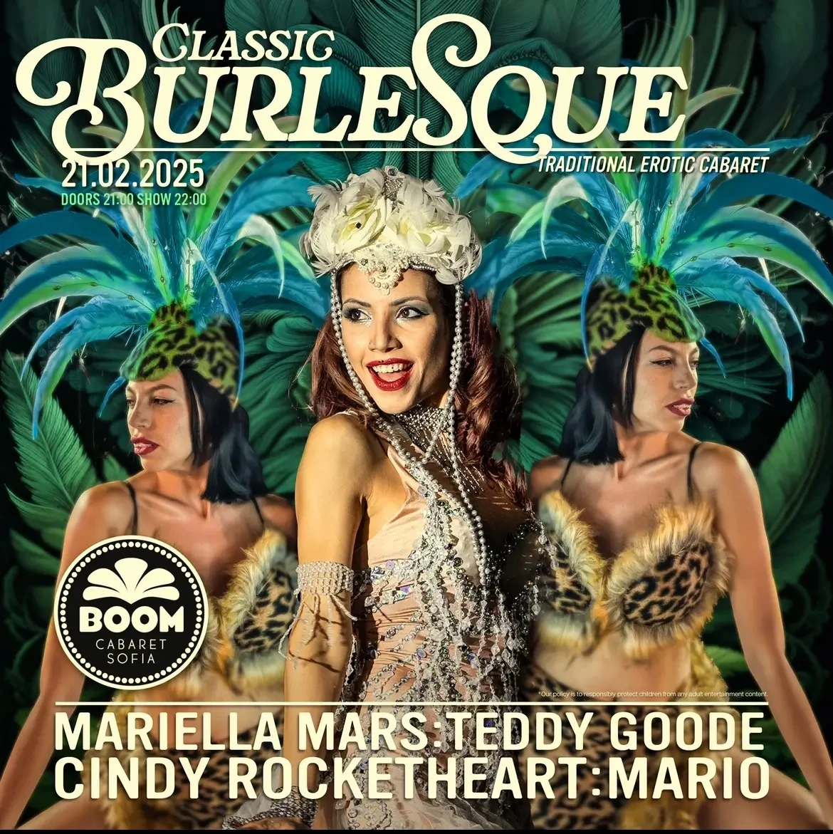 Първото и единствено в България истинско бурлеск кабаре ви готви спектакъл, изпълнен с пера и главозамайващи хореографии! Нашето бурлеск шоу, както винаги ще бъде изпълнено с класически кабаре изпълнения, много комедия, еротика и класа!