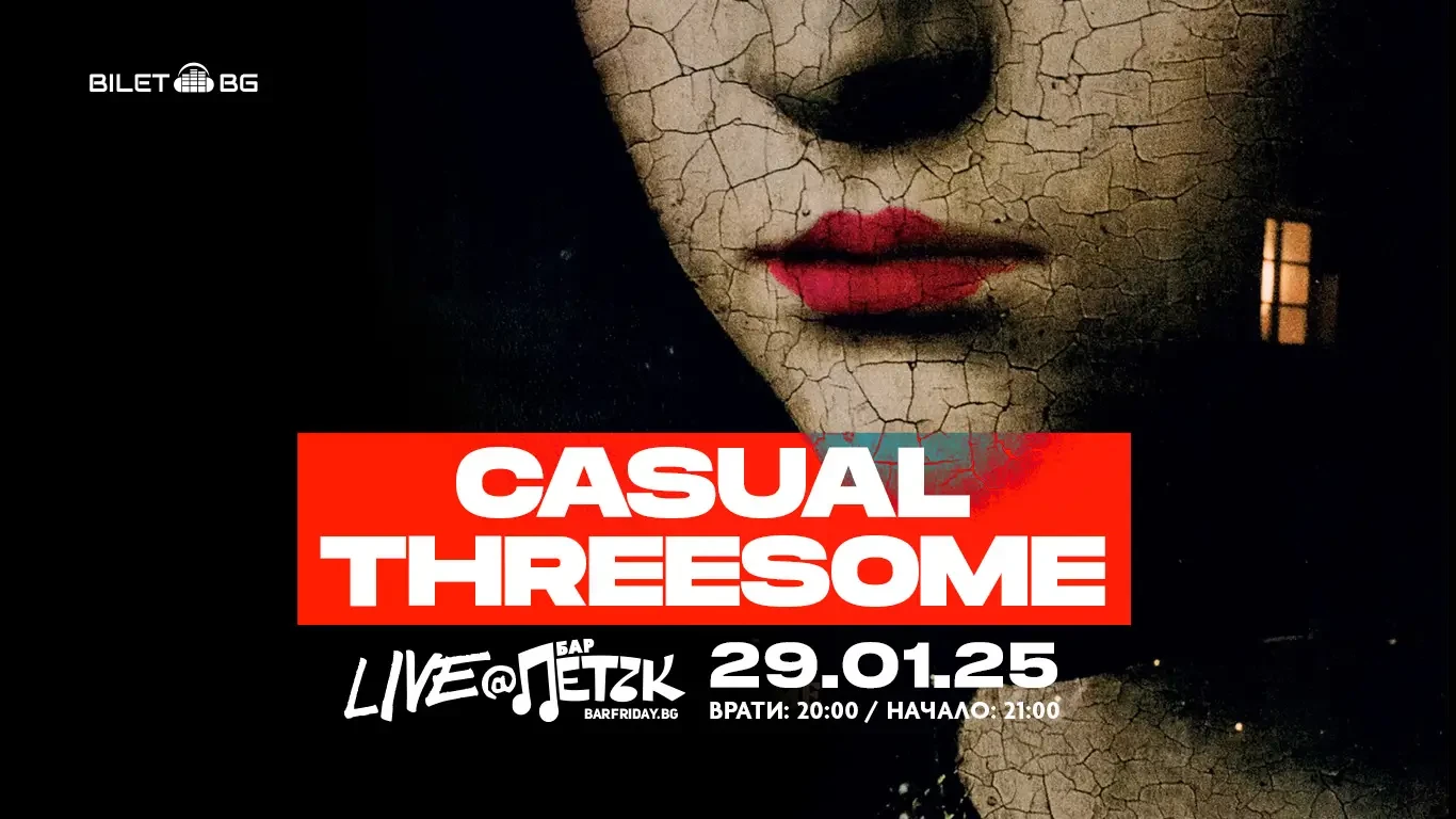 На 29 януари Casual Threesome се качват на сцената на Бар Петък с новото си ЕР „Full Of Scars“. Пет парчета, включително „Two Dogs“ – нищо в тях не е случайно, освен това, че ще ги слушаш с питие в ръка.