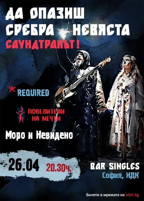Моро и Невидено ви канят на една от най-известните сцени в София, където ще представят своя дългоочакван дебют – музикалният албум/саундтрак на мюзикъла "Да опазиш Сребра невяста". Този проект е завладяващо пътешествие през звуците на българския фолклор, преплетени с модерен етно-рок и дълбоки, поетични текстове, които докосват душата. Моро и Невидено обещават не просто концерт, а преживяване, което ще остане с вас дълго след последните звуци на гъдулката и кавала, след последния акорд на тежките китари и ударни.
