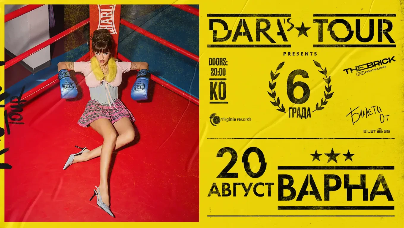 Енергия, харизма и истински триумф на сцената – DARA ще се срещне с публиката си в шест града! Сред тях е и родната ѝ Варна, където тя обещава незабравимо шоу с много музика и танци.