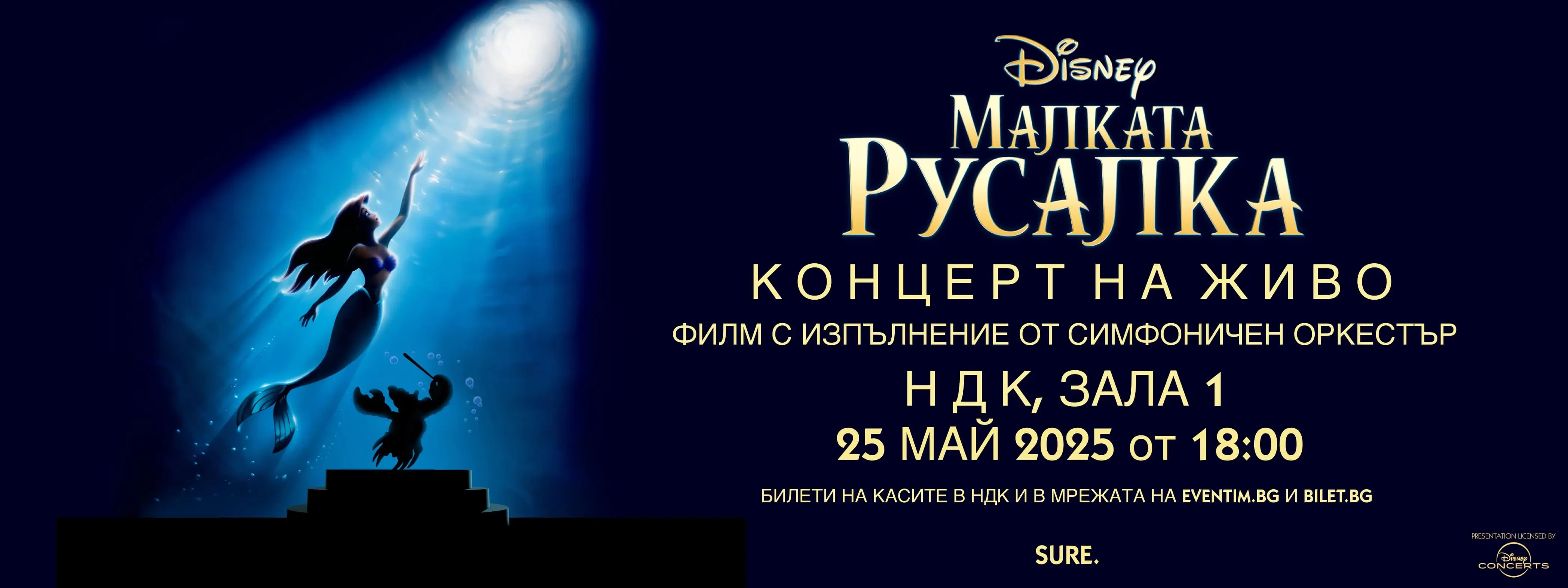 SURE ENTERTAINMENT И СОФИЯ РЕКОРД ФАКТОРИ ПРЕДСТАВЯТ КОНЦЕРТНО ИЗПЪЛНЕНИЕ НА АНИМАЦИОННАТА КЛАСИКА НА DISNEY „МАЛКАТА РУСАЛКА“