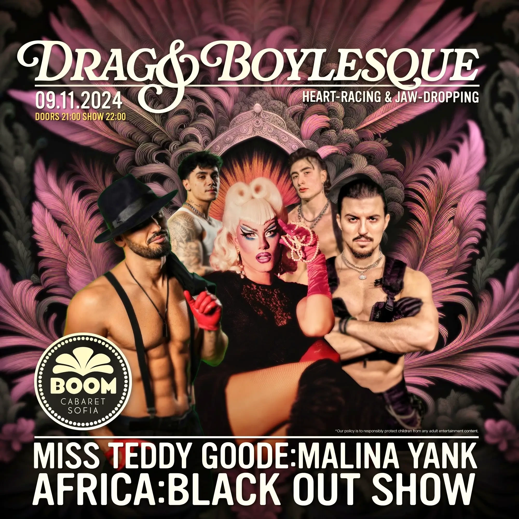 Очаква ви нощ, която ще помните дълго! Драг и бойлеск със специални гости - момчетата от скандалното “Блек Аут Шоу” се задава през ноември! Представлението, което създаде истински фурор миналия сезон, се завръща!