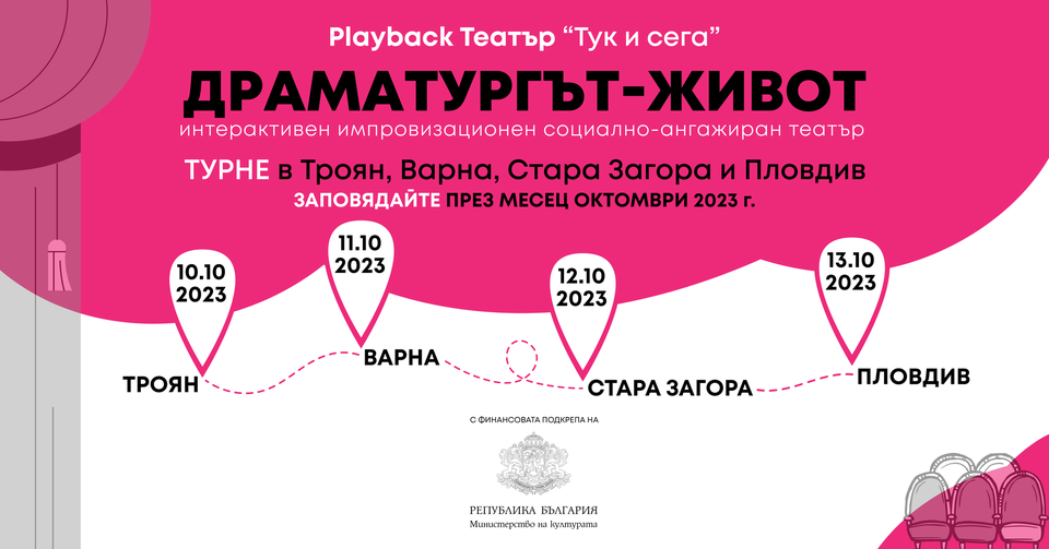 Playback театър “Тук и сега” ще представи "Драматургът: Живот" - интерактивен импровизационен социално-ангажиран театър на турне в България.