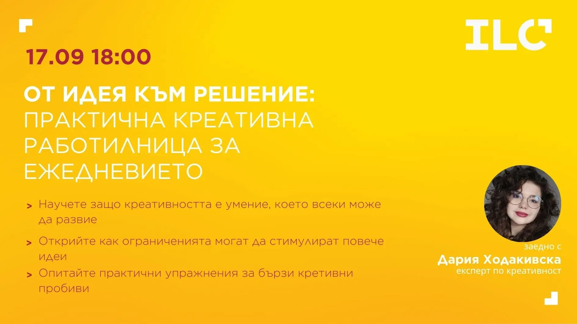 🔍 В тази работилница водена от водещ Дария Ходакивска (водещ експерт в ILC) ще се потопите в практики и техники, които ще ви помогнат да: