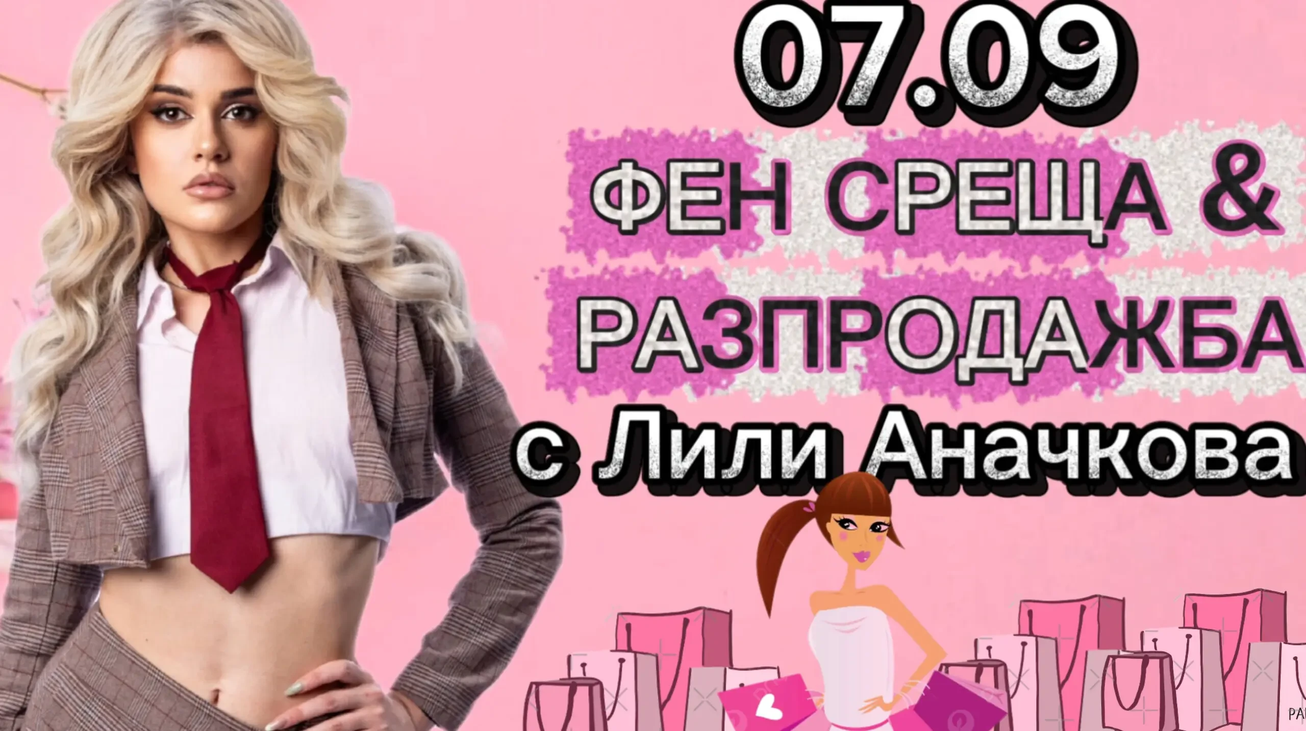Елате на 7 септември в гр. София, зала Black and White, Младост 2ж.к. Ул. „Св. Киприян“ 60, за едно различно, интересно и забавно преживяване с Лили Аначкова!🩷 Това е първата по рода си фен среща, комбинирана с голяма разпродажба.😍