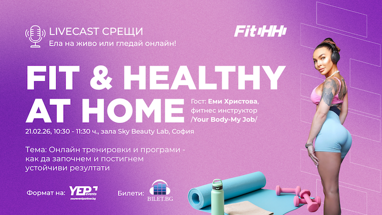 Fit & Healthy at Home livecast срещи - Епизод 1: 21.02.2026. от 10:30 до 11:30 ч. на живо за присъствена публика в Sky Beauty Lab (София, бул."Тодор Александров" 71) и безплатно онлайн.