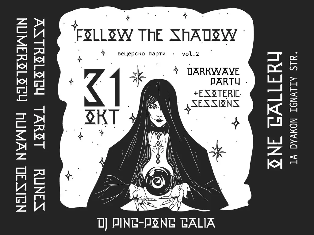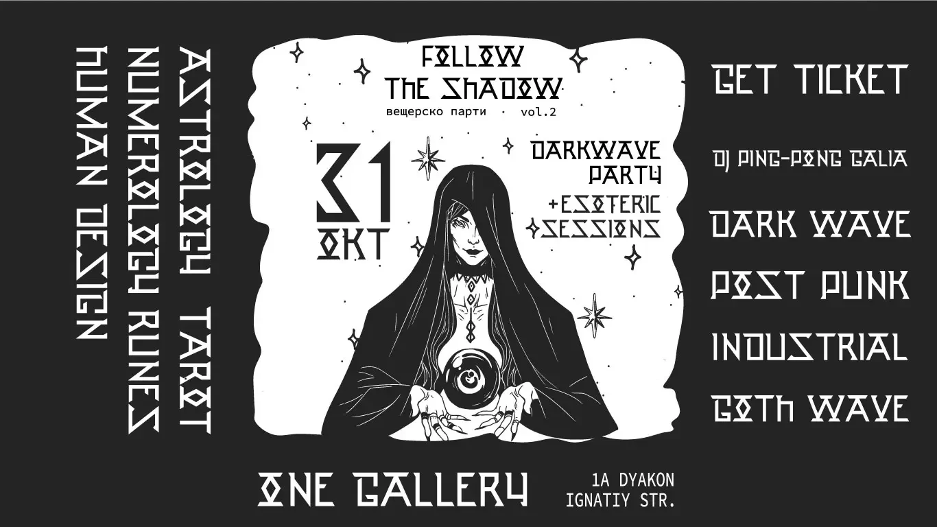 Тази година Switchy Flow и One Gallery ви представят Вещерско парти vol. 2: Follow the Shadow – събитие, което надскача стереотипите на Хелоуин и се превръща в истинско ритуално преживяване.
