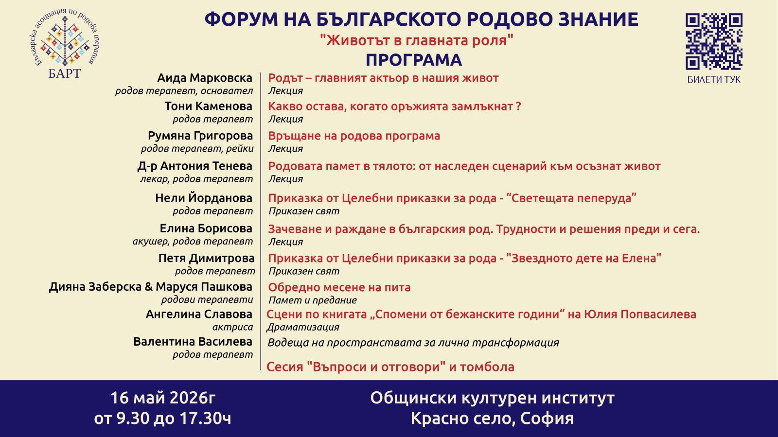 ФОРУМ НА БЪЛГАРСКОТО РОДОВО ЗНАНИЕ с мото за 2026г. "Животът в главната роля"