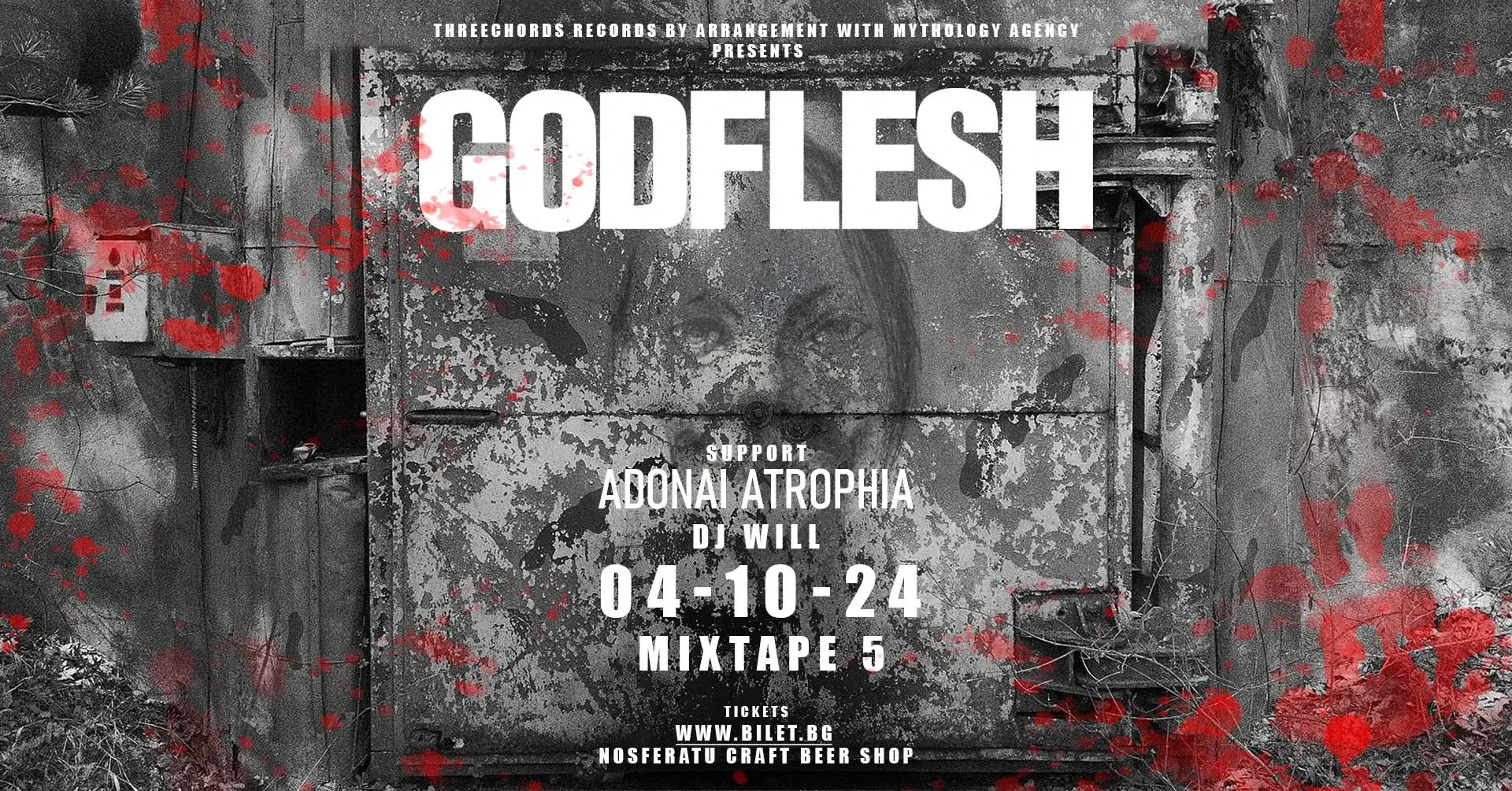 На 04/10/2024 г., Godflesh ще посетят България за първи път, за да ни покажат как насочват страданието и отвращението в музиката, които удрят както тялото, така и душата, но едновременно с това, използвайки тонове ужас и болка, създават нещо прекрасно.