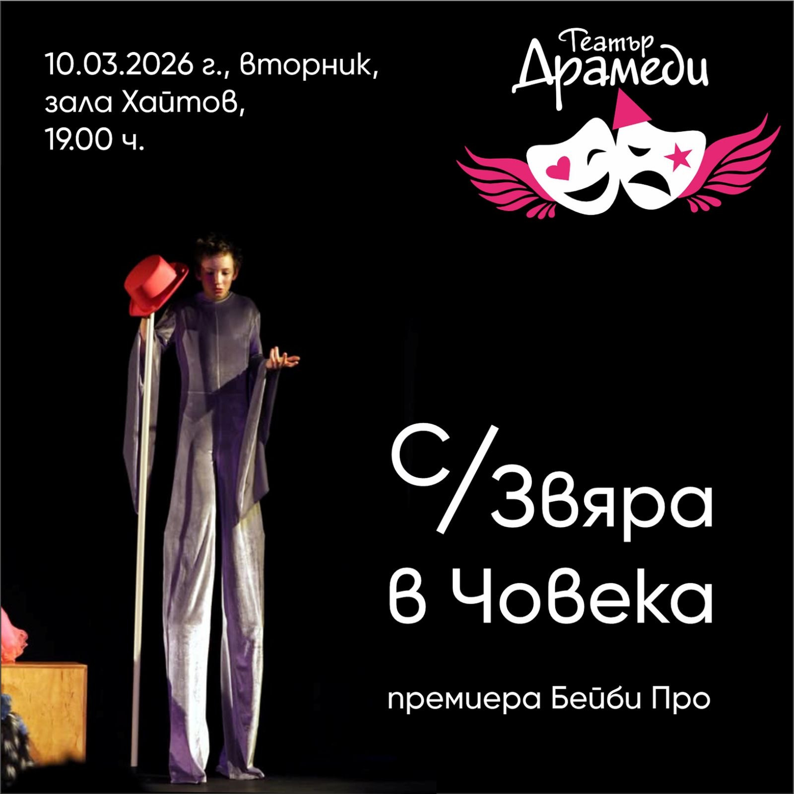 "С/Звяра в човека"- авторско представление на Театър Драмеди