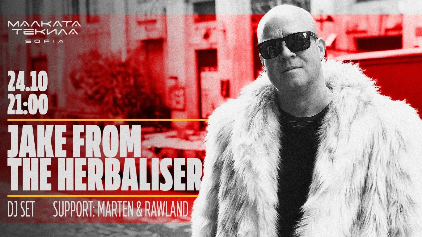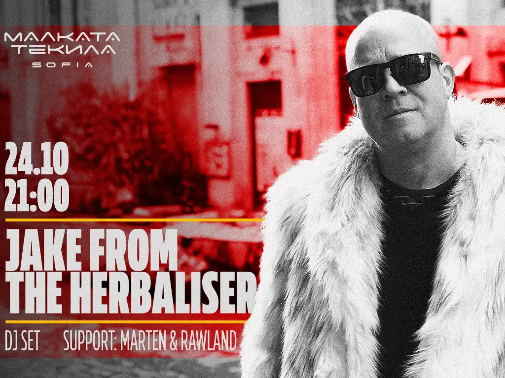 На 24 октомври посрещаме едната половина на една от най-нашумелите британски фънк и хип-хоп групи, познати ни от Ninja Tune! Jake Wherry от The Herbaliser акостира в Малката Текила София, за един фънки и незабравим DJ set, с който ще се пренесем на клубната UK сцена.