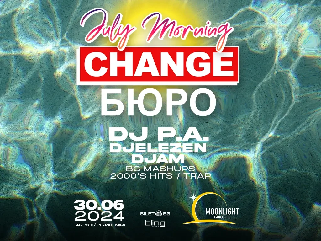 Новото хитово DJ парти CHANGE БЮРО идва на гости на Варна в любимия Moonlight Event Center за най-незабравимия July Morning на черноморието.