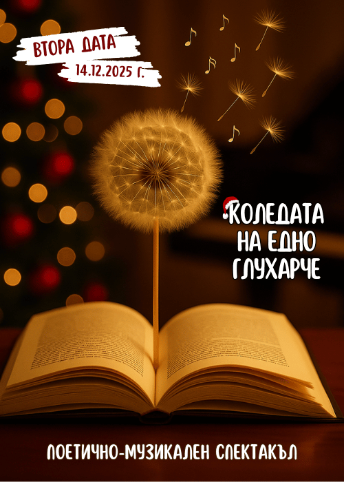 „Коледата на едно глухарче“ е специалното коледно издание на поетично-музикалния спектакъл „Сезоните на едно глухарче“ – нежно, човешко преживяване, в което поезия, музика, театър и мултимедийна програма се преплитат, за да ни върнат към онова тихо чудо на споделеността, което често губим в празничната шумотевица.