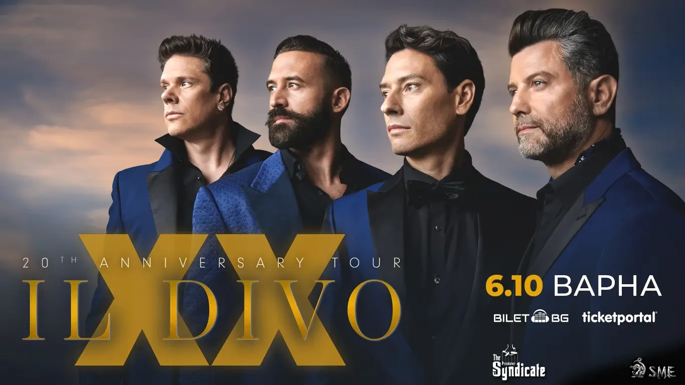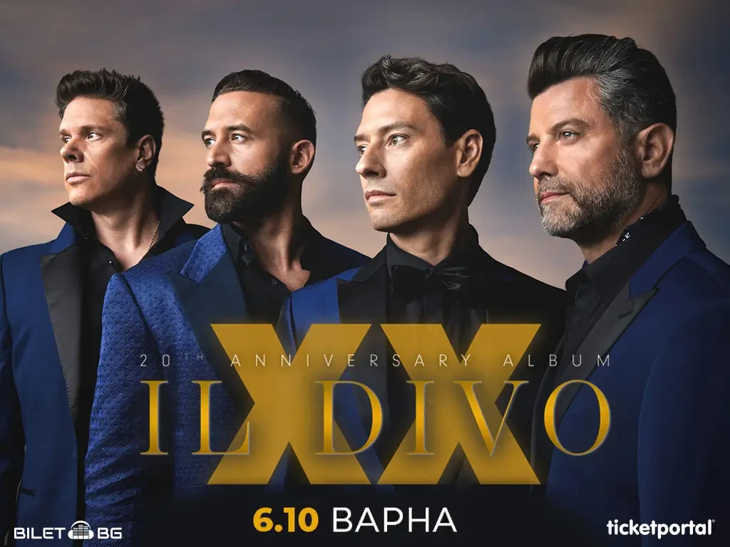 Точно 20 години след дебюта си прочутите IL DIVO идват да очароват компетентната българска публика с магически спектакъл на 6 октомври 2024 г. във Варна, Дворец на културата и спорта.