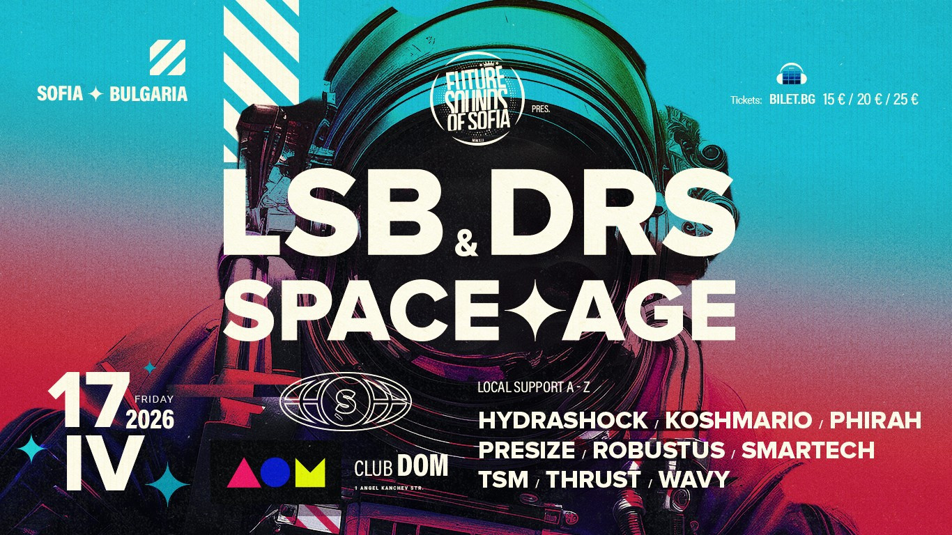 17 април, клуб ДОМ - Space Age мисия с LSB & DRS. Соулфул дръм енд бейс, топъл бас и прецизна селекция, подредена като звездна карта. Една нощ в стабилна орбита около дълбокия звук. Повече информация скоро!