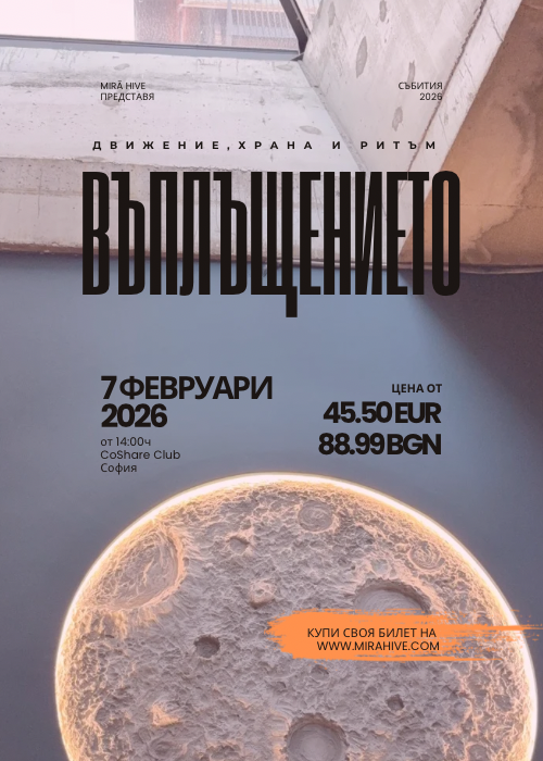 MIRĀ: Въплъщението- Движение, храна и ритъм е следващото събитие от цикъла на MIRĀ, посветено на връзката между храната, движението и умението да живеем в баланс на тяло и дух. В един следобед ще се потопим в лекции и практики, които ни помагат да се върнем към естествения си ритъм, без крайни режими, силови и изтощителни тренировки, а с повече разбиране, лекота и грижа.