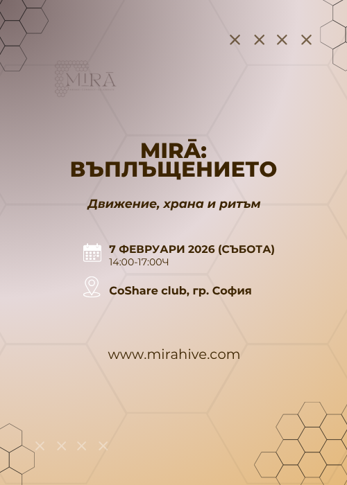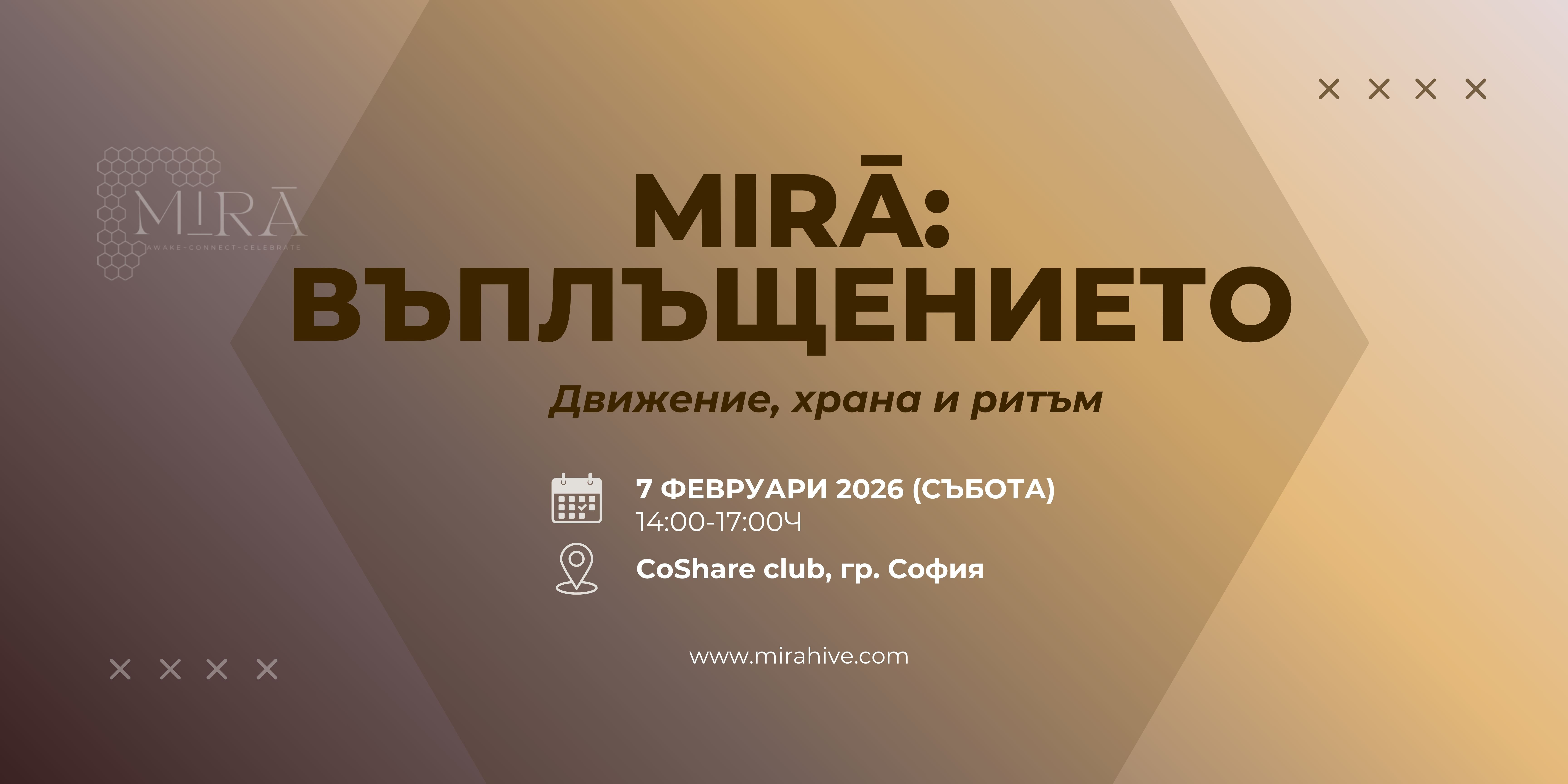 MIRĀ: Въплъщението- Движение, храна и ритъм е следващото събитие от цикъла на MIRĀ, посветено на връзката между храната, движението и умението да живеем в баланс на тяло и дух. В един следобед ще се потопим в лекции и практики, които ни помагат да се върнем към естествения си ритъм, без крайни режими, силови и изтощителни тренировки, а с повече разбиране, лекота и грижа.