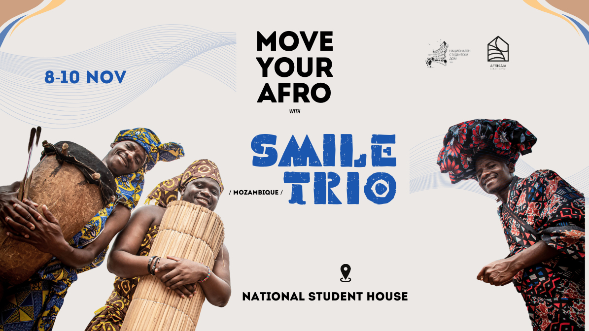 Между 8-10 ноември Smile Trio, музиканти от Мозамбик, Източна Африка, ни предоставят уникалния шанс да се включим в тридневен музикален фестивал в София с източноафриканска музика, танци и песни. Триото ще дойде за първи път в България като част от тазгодишното им европейско турне, а програмата им представлява 7 часа със следните класове: