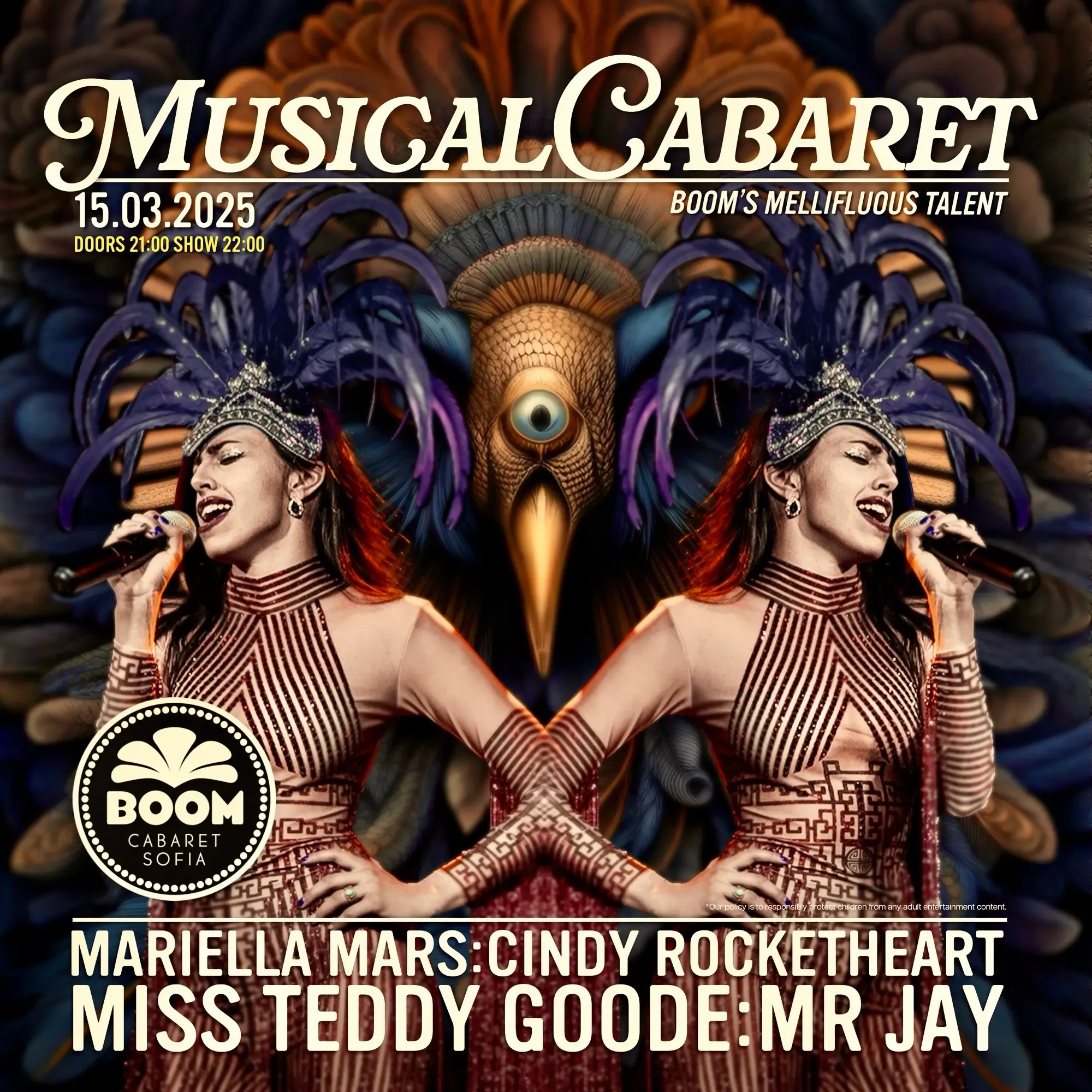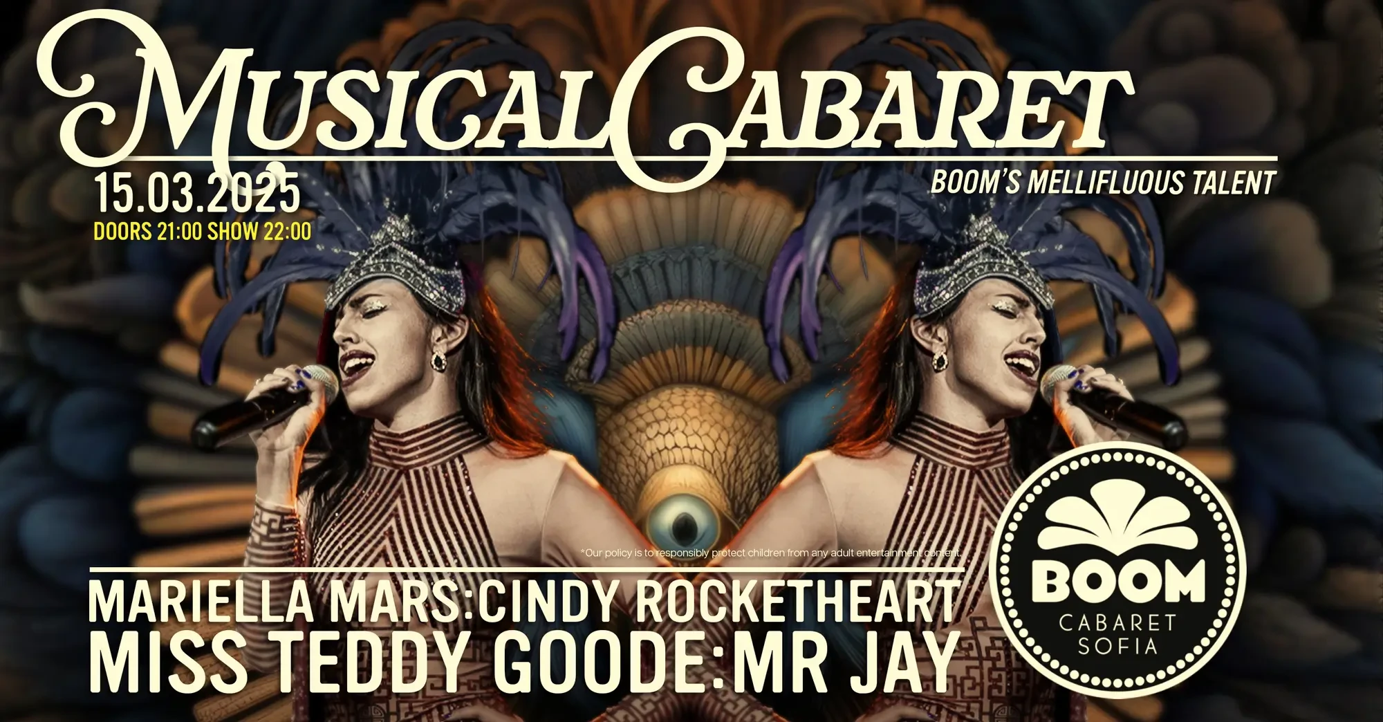 Време е за магическо музикално кабаре, което ще ви пренесе в света на мюзикъла и блясъка! Пътуване през Бродуей до Мулен Руж с гласовете на Ася Андонова, Мариела Марс и Теди Гууд, които ще завладеят сцената с нашите страхотни танцьори и костюми, които ще ви оставят без думи!