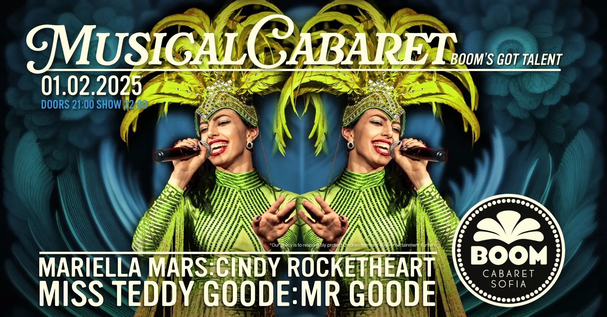 Гласовете на Мариела Марс, Сидни Рокетхарт и Теди Гууд, заедно с нашите танцьори ще ви пренесат в златната епоха на Холивуд и всичко ще бъде облечено в много хумор! Една незабравима нощ в първото и единствено бурлеск кабаре в България!