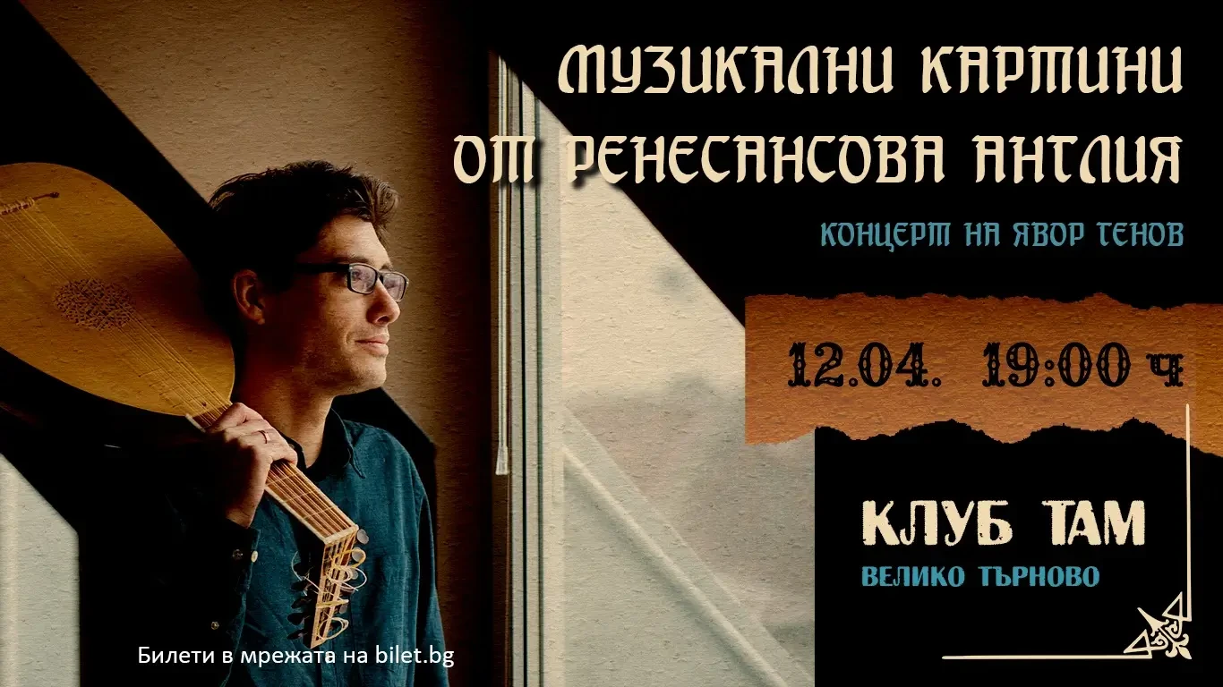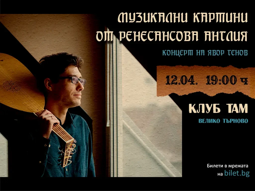 Концертът на Явор Генов разкрива картини от ренесансова Англия - епохата на Шекспир и кралица Елизабет, с музика за лютня от автори като Дауланд и Робинсън, но също така с множество анонимни творби от запазени ръкописи.