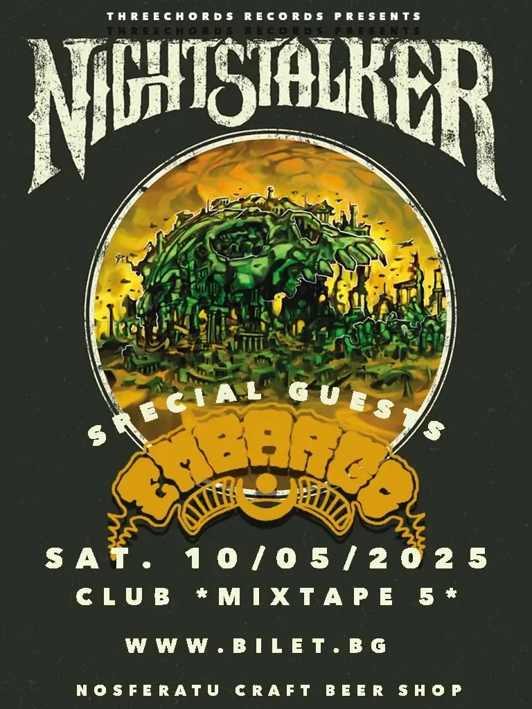 Групата, която сме поканили е специална за нас – познаваме се с тях от далечната 1993 г. и дори и в най-смелите си сънища не сме си представяли, че ще дойде ден в който ще организираме техен концерт, и то в България. Защото Nightstalker са живите рок командоси на гръцката хеви сцена, но не се правят на звезди. От началото на 90-те години, когато свиреха пред максимум 100 човека до сега, когато имат хиляди приятели и милиони стриймове, те продължават да служат единствено и само на рок музиката, влагайки в китарите си енергията на епохата и създавайки саундтрака на град Атина, който милионите туристи никога няма да чуят. Защото Nightstalker са бащите на рок сцената на Гърция, те очертаха пътя, преминавайки през тесните улички, мазетата на Екзархия и наркозависимостта през мрачните времена на 90-те години, издълбавайки незаличима бразда в музикалната история на страната и печелейки уважението и любовта на всички. Всяка песен е история, но и илюзия едновременно, защото, както казва Арджи „всичко в живота е илюзия, и музиката е една илюзия за свобода, но пък рок музиката е най-чистото нещо, което мога да почувствам на тази планета“.
