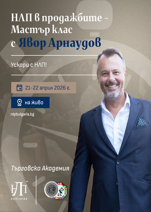 Изучете и упражнете висшия пилотаж в продажбите с техниките от Невро-лингвистично програмиране – доказано най-успешната методология в комуникация с потенциални клиенти и поддържане на взаимоотношения с настоящи такива. Превърнете се в търсени и желани бизнес партньори.