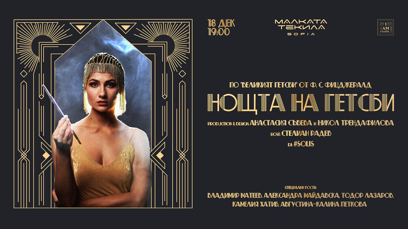 Казват, че Гетсби още е жив. Казват, че всяка нощ чака своите гости. Някои вечери музиката заглъхва, но шепотът остава. В нощта на 18 декември Малката Текила София отваря врата към друг свят и вие ще бъдете част от него. Едновременно зрители и участници. Никой не знае какво ще се случи. Облечете се за парти. Но бъдете готови и за нещо повече. Това е нощ, в която вие ставате част от историята на Гетсби. Не просто парти, не просто театър.