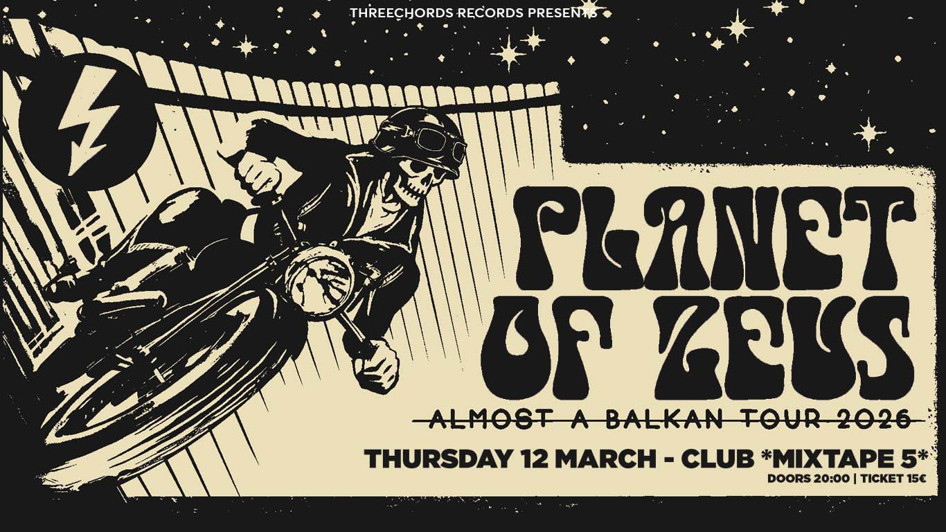 Групата ще се приземи на 12 март 2026 г. в родния клуб *Микстейп 5* за една нощ, посветена на планетата Зевс, в която атмосферата е заредена с тежки груув рифове, гениални и цялостни, които ни напомнят за най-доброто от Rage Against the Machine, енергията на MC5 и поп елементите на Queens of the Stone Age.