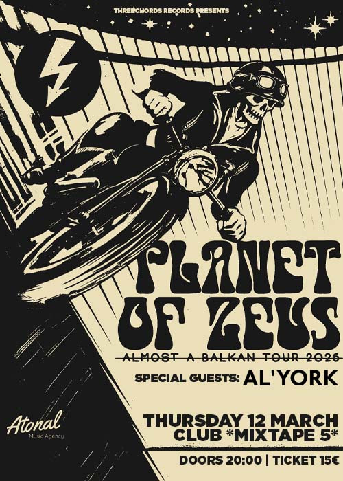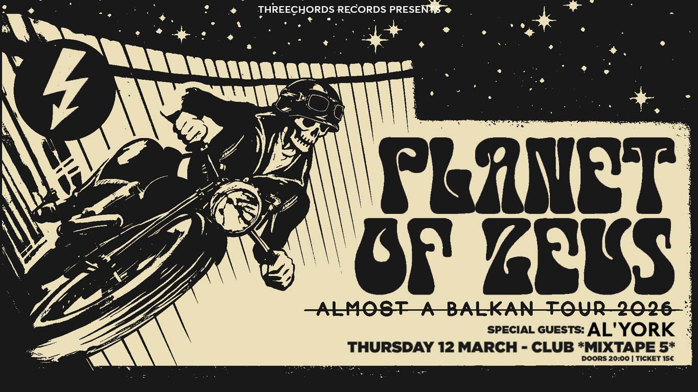 Групата ще се приземи на 12 март 2026 г. в родния клуб *Микстейп 5* за една нощ, посветена на планетата Зевс, в която атмосферата е заредена с тежки груув рифове, гениални и цялостни, които ни напомнят за най-доброто от Rage Against the Machine, енергията на MC5 и поп елементите на Queens of the Stone Age.