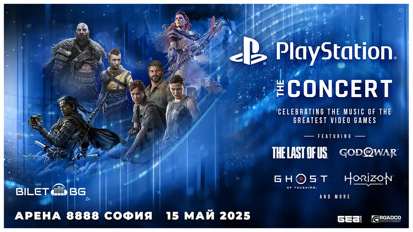 Лос Анджелис, 15 октомври 2024 г. — Sony Interactive Entertainment, RoadCo Entertainment, GEA Live and SOFIA MUSIC ENTERPRISES представят PlayStation: The Concert, революционно музикално събитие на живо, което дава сценичен живот на най-емблематичните саундтраци от света на видеоигрите. Със свръхмодерна продукция, това шоу съчетава завладяваща музика, най-новите визуални технологии и легендарни заглавия от видеоигрите в незабравимо преживяване.