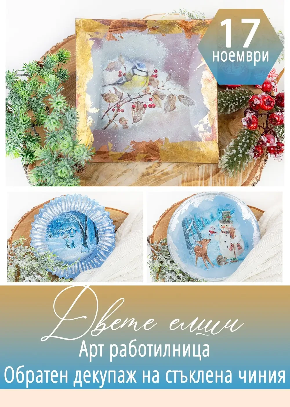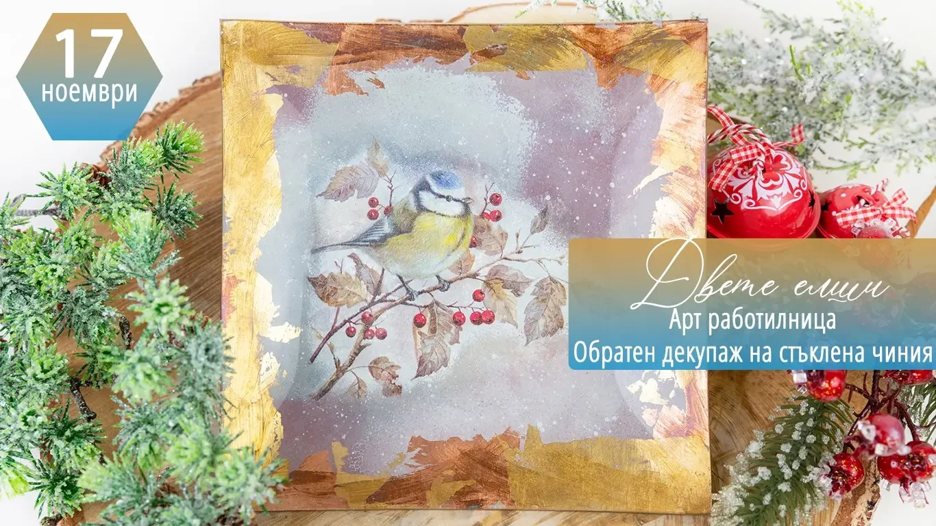 По време на тази работилница ще работим с техниката обратен декупаж на стъклена чиния и ще направим невероятно красиви и ефектни чинии.
