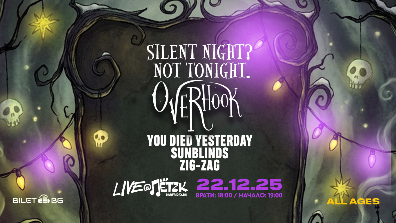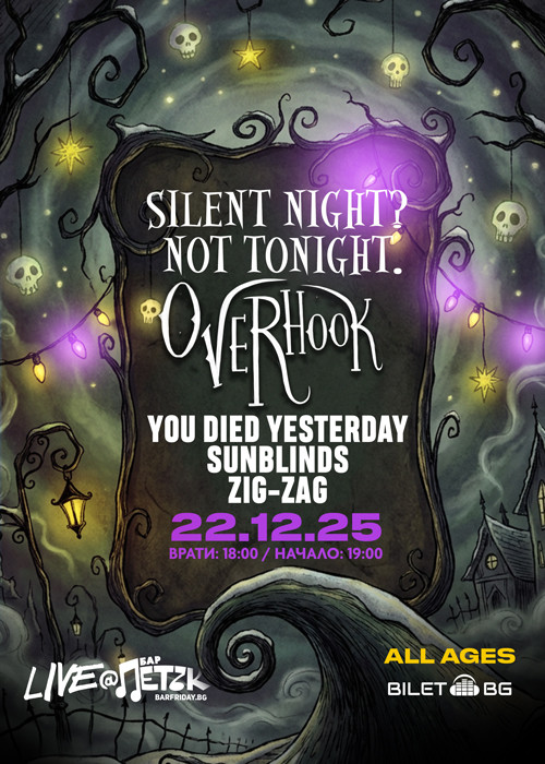 На сцената ни се събират четири банди за една алтернативна предколедна вечер, в която шумът е задължителен, а енергията – максимална. Overhook, You Died Yesterday, Sunblinds, Zig-Zag с ALL AGES концерт!
