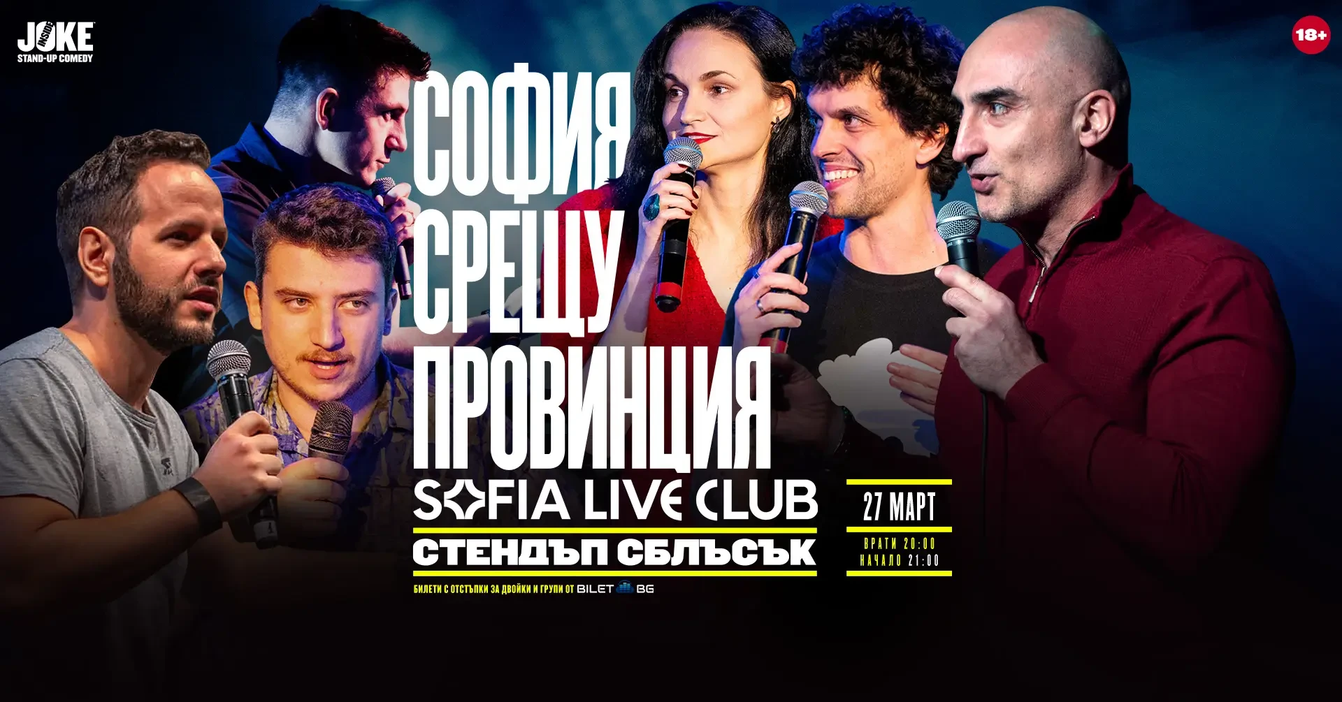 Шест комедианти от Inside Joke Stand-up Comedy, от столицата и дълбоката провинция, ще премерят шеги и пънчове на сцената на SOFIA LIVE CLUB! Не пропускайте едно несравнимо шоу от което ще направите коремни преси от смях - не зависимо от къде сте.