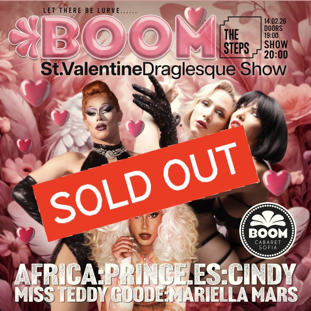 Сцената ще нагорещят Теди Гууд и Синди Рокетхарт с невероятни бурлеск изпълнения, певицата Мариела Марс ще ви пренесе в света на любовта със страхотния си глас , а кралиците Африка и Принцес, заедно с нашите танцьори ще ви побъркат с бляскаво драг зрелище!