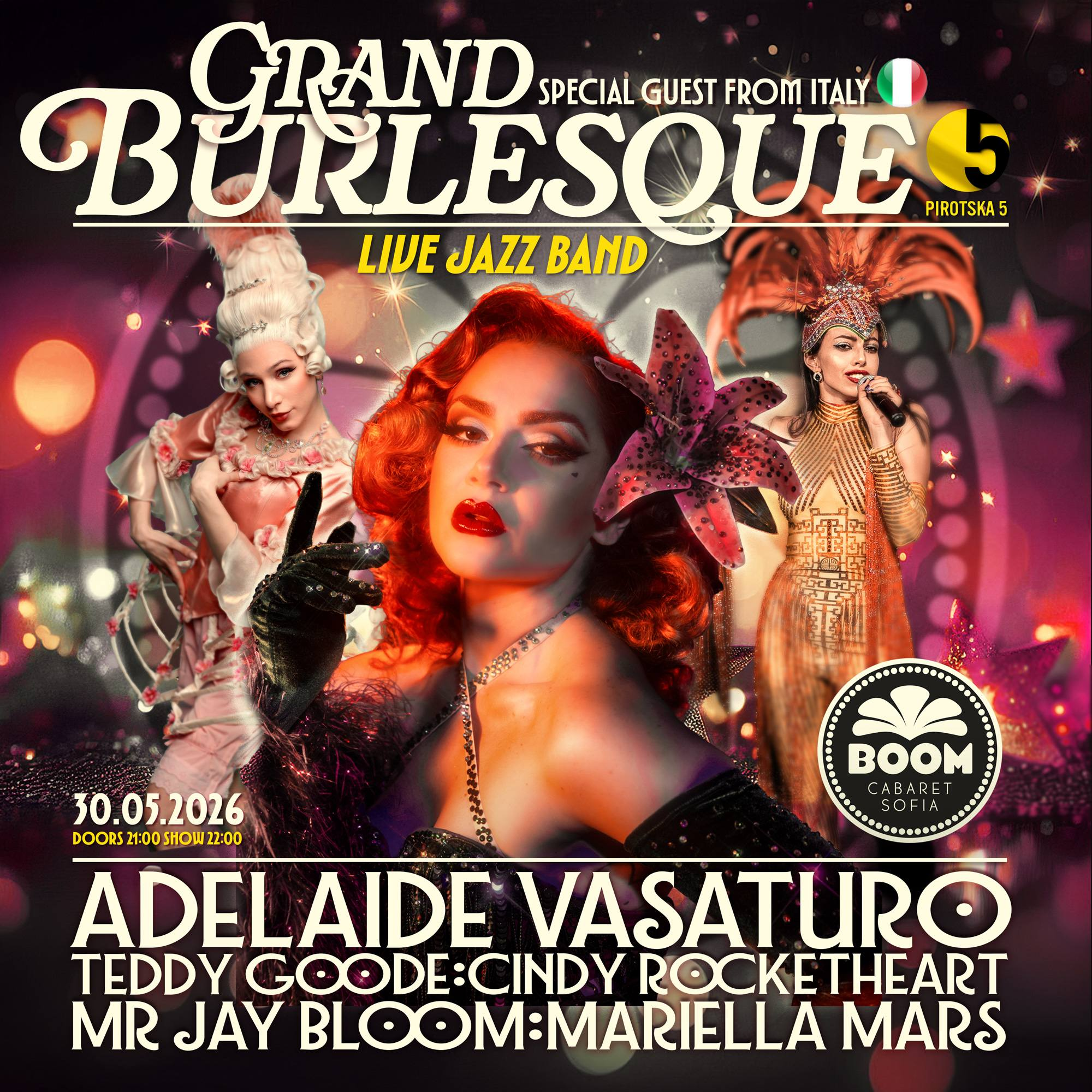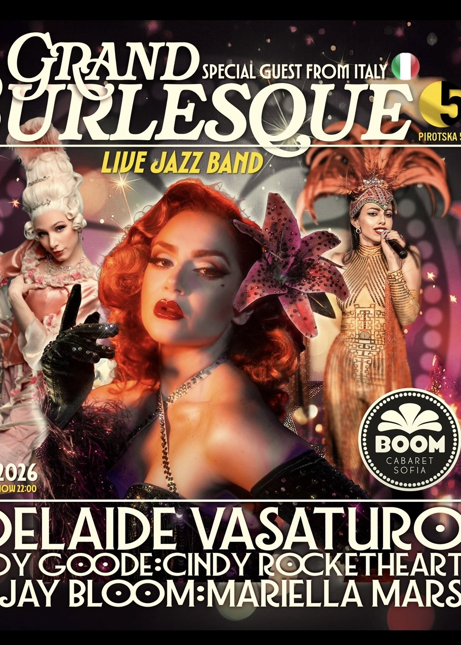 Единственото бурлеск кабаре на Балканите ви кани на мащабен спектакъл с жив джаз бенд и специален гост от Италия - бурлеск звездата - Аделайд Васатуро
