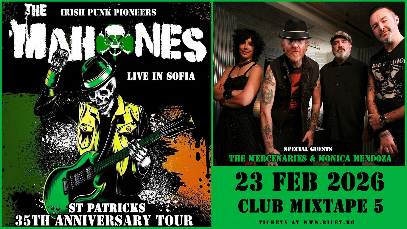 На 23 февруари 2026 г. ирландските Celtic punk ветерани The Mahones ще свирят в столичния клуб Mixtape 5, като част от своето специално празнично турне St. Patrick’s 35th Anniversary Tour. Събитието обещава динамична, високоволтажна и изпълнена с емоции вечер, която ще събере на едно място феновете на пънка, фолка и ирландския дух.
