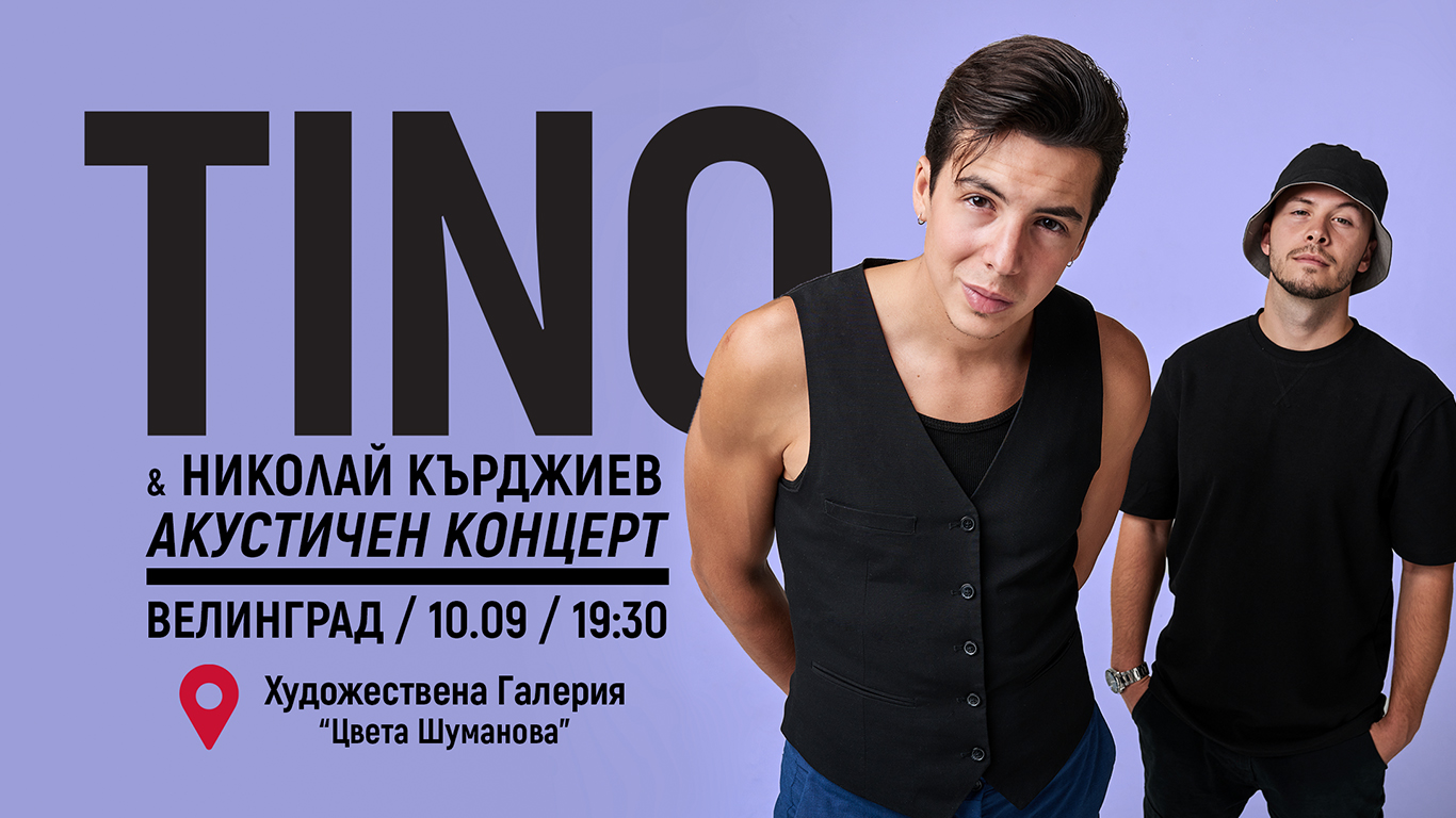 По време на Велинградските празници през лятото на изминалата 2022-ра година Тино за първи път излезе пред велинградската публика и остана очарован от нея така, както и тя от него! Година по-късно той спазва обещанието, което даде на сцената и което всички аплодираха и пристига отново във Велинград за специален, бутиков акустичен концерт в знаменитата за града Художествена Галерия "Цвета Шуманова". Заедно с него ще бъде забележително талантливият китарист Николай Кърджиев. Датата е 10-ти септември, а часът - 19:30. Заповядайте!