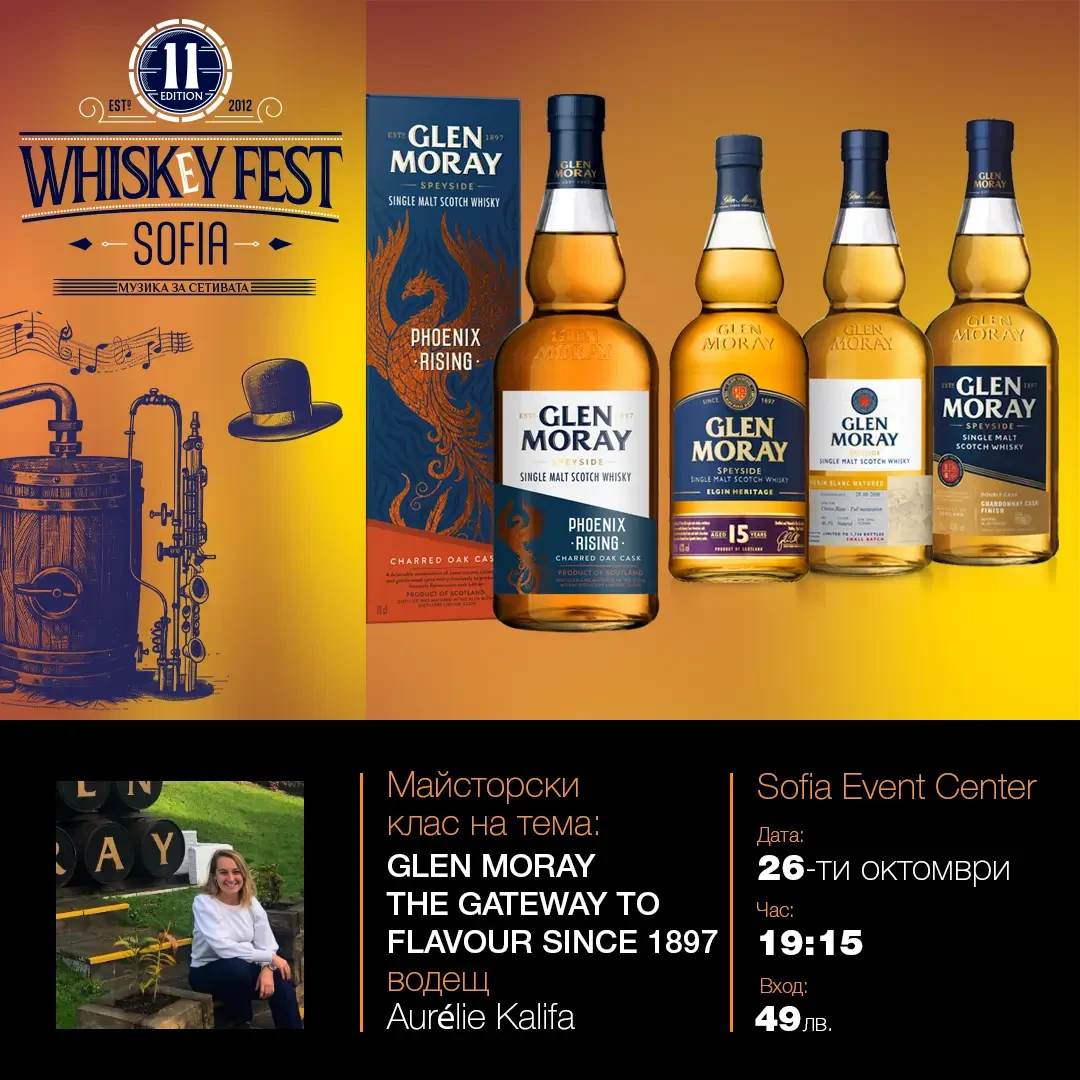 Освен разходката през класика, порт, шенин и риоха, на единствения по рода си майсторски клас за първи път в България ще имате възможност да опитате спечелилия приза за "Най-добър шотландски едномалцов скоч според World Whiskies Awards за 2023" - GLEN MORAY PHOENIX Rising