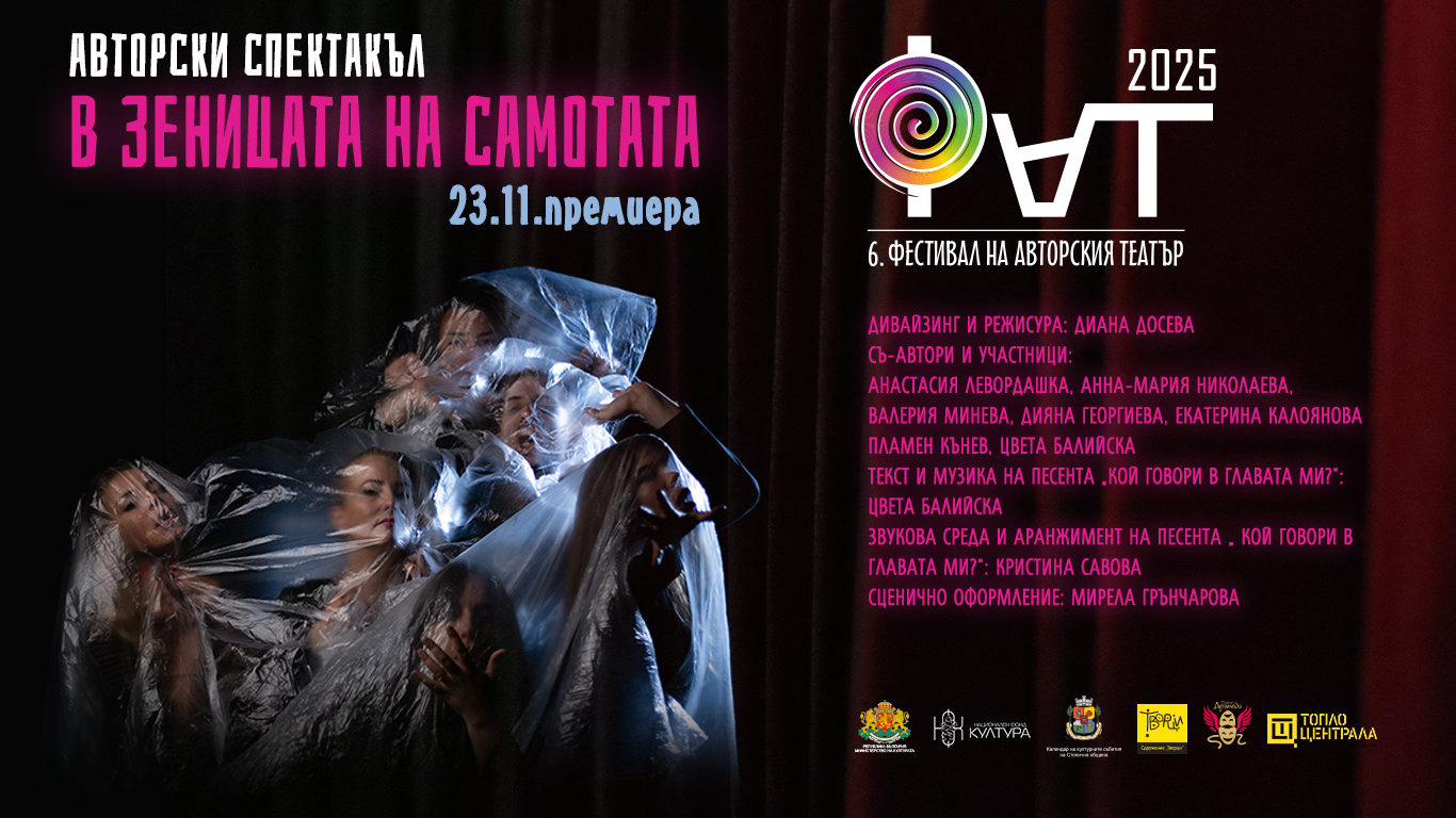 Шесто издание на Фестивал на авторския театър - ФАТ 2025 се реализира с финансовата подкрепа на Министерство на културата, Национален фонд „Култура”, програма „Фестивали” 2024 и Столична община като част от Календар на културните събития за 2025 г. на Столична община.