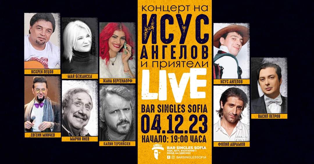 Ще има концерт в НДК бар Singles с едни от най-ярките звезди на България като Филип Аврамов, Мая Бежанска, Калин Терзийски,  Искрен Пецов,  Жана Бергендорф,  Васил Петров и лорд Евгени Минчев.
