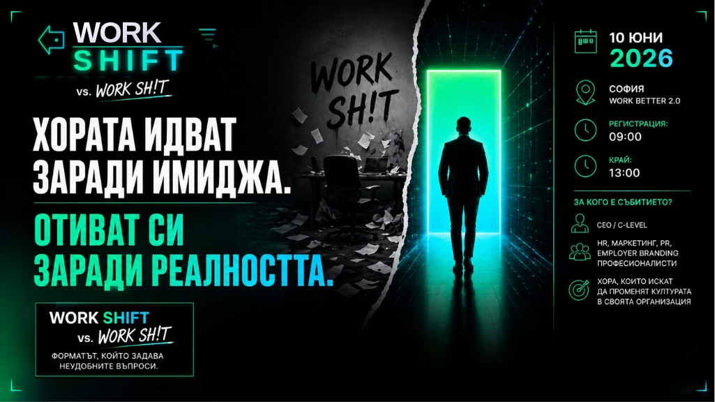 Първото издание – Work SHIFT vs. Work Sh!t – е разговор за бизнеса през хората, културата и решенията, които струват пари. Много пари.