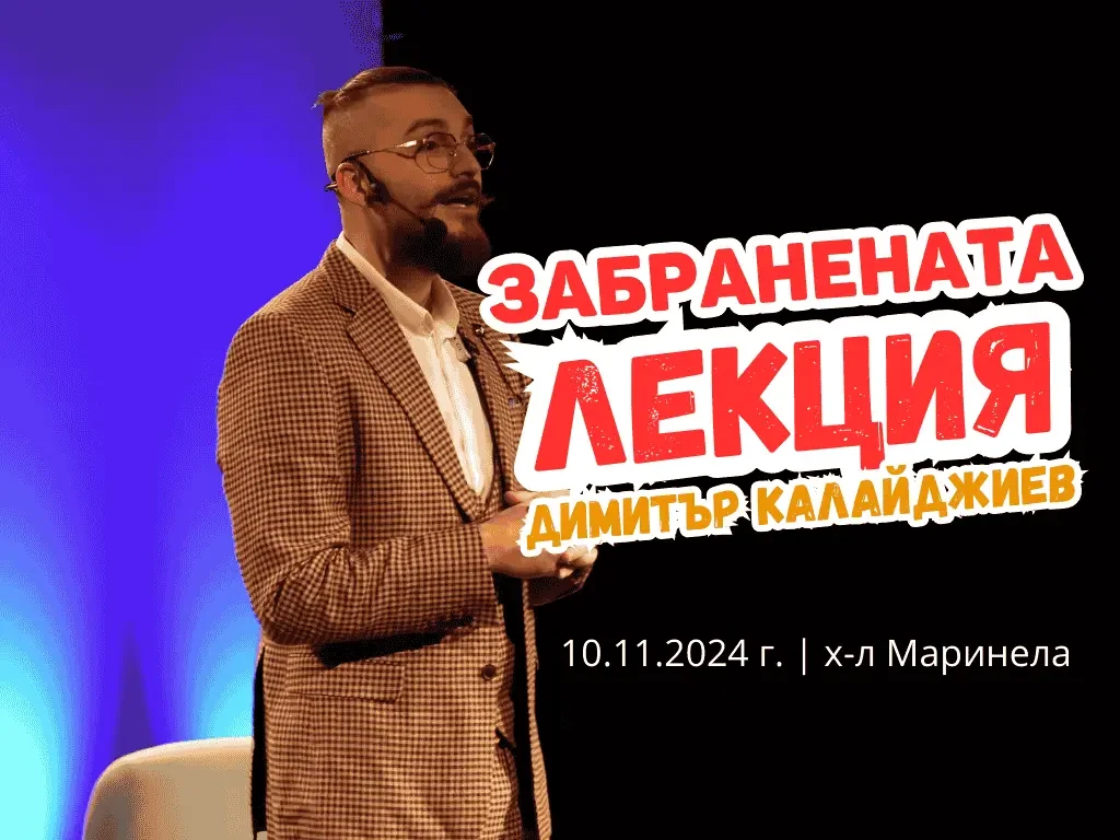 Няма да разменяме само учтиви и лицемерни думи, след което всеки да си тръгне до следващия път. Както всички знаем, Димитър Калайджиев е автентичен, искрен и импулсивен. Затова и динамиката на Забранената Лекция ще бъде също толкова жива и непредсказуема!