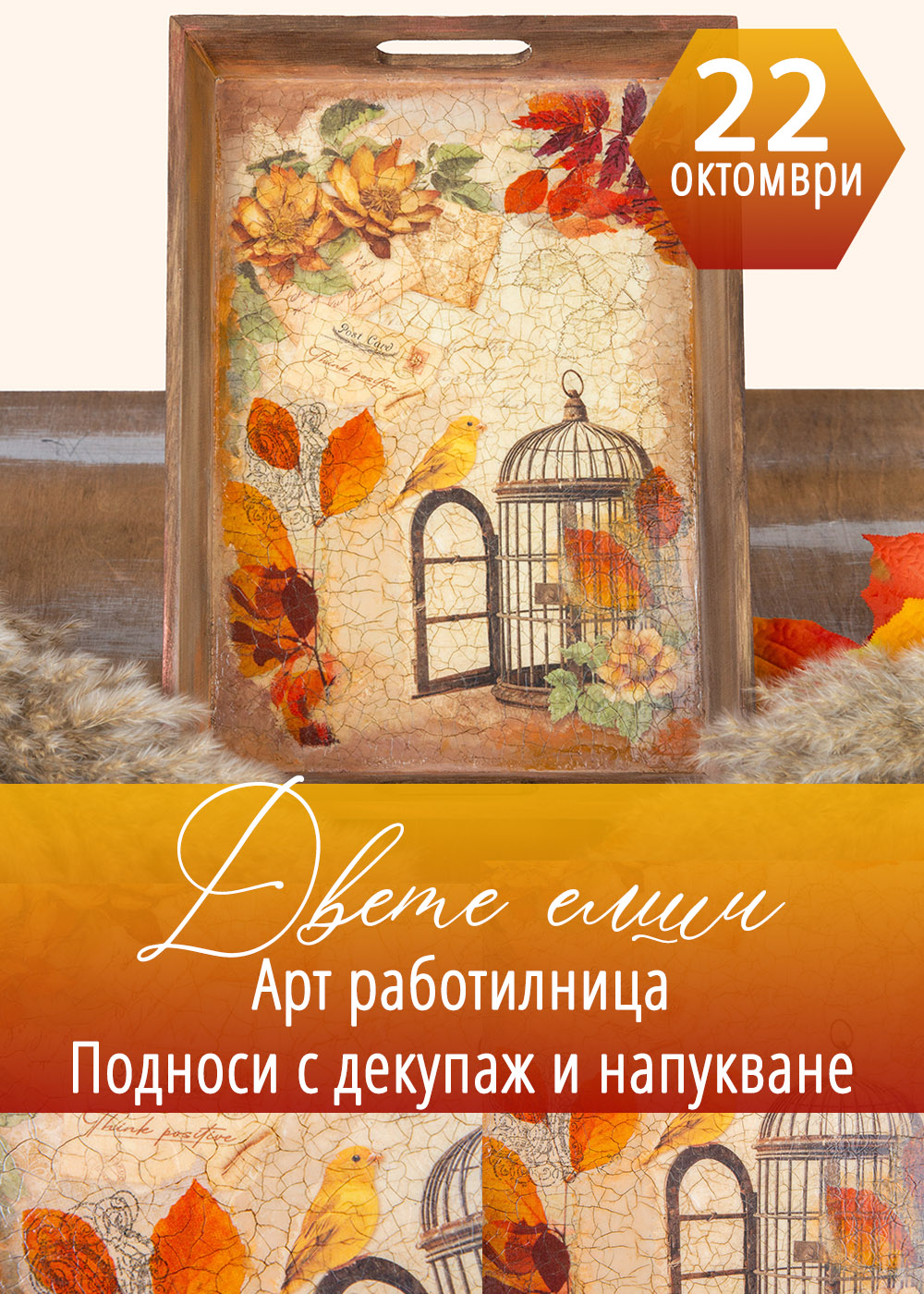 Работилница Подноси с декупаж и напукване