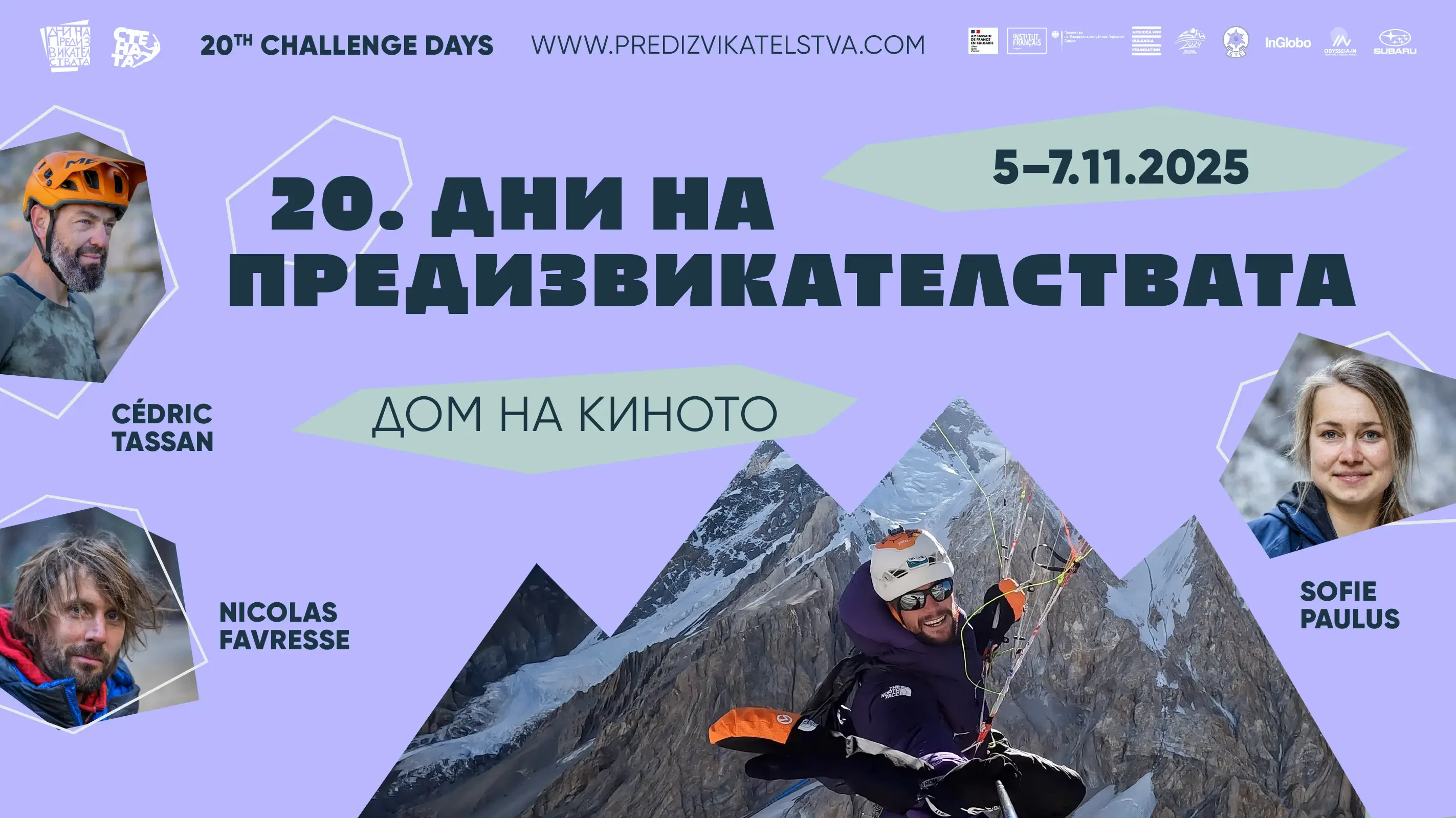 We will celebrate them with an exhibition and by providing a stage for world-class Bulgarian and foreign athletes and adventurers, and films that will touch us with their stories, humanity, suspense and cause. The charismatic bigwall specialist Nicolas Favresse (Belgium) returns with 2 of his films, the rising German star Sofie Paulus will present us with her alternative view of climbing, and the lord of the Central Asian mountains and steppes - Cedric Tassan (France, mountain bike), will remind us of our essence as travelers.