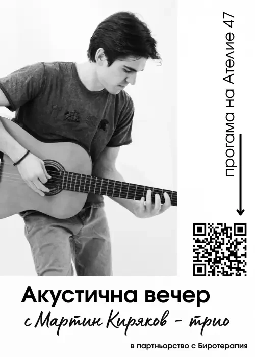 A romantic evening awaits us on the terrace of Atelier 47. Trio Martin Kiryakov will transport us to the world of timeless classics, and together with them we will also hear the band's original songs.