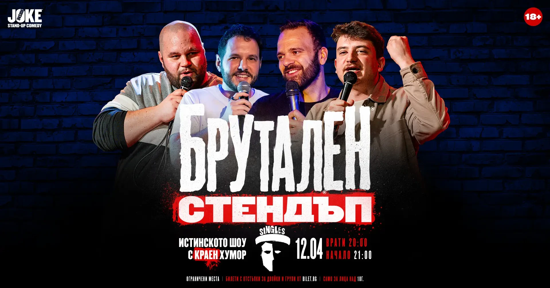 Не пропускайте тази скандална вечер с мастити комедианти и черен хумор за ценители - само на 12 април, само в клуб SINGLES (НДК, вход А4)